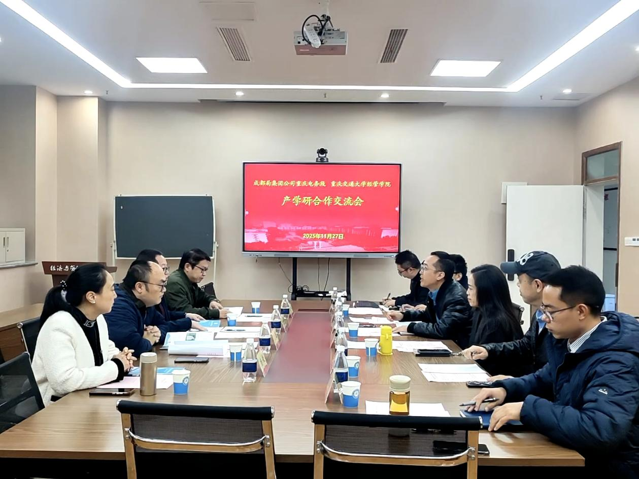 2025年11月27日,中国铁路成都局集团有限公司重庆电务段党委书记崔忠勇、总工程师龚小江一行到访经管学院,开展产学研合作交流。经济与管理学院党委书记尹作发、党委副书记吉孟君以及专家教授代表参加座谈交流。