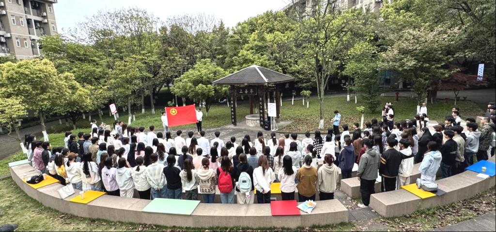 2026年4月1日,经济与管理学院新团员入团仪式在科学城校区“古井·2011”文化庭院庄严举行。全体新团员齐聚广场,以青春之名赴信仰之约,在庄重肃穆的仪式中完成身份蜕变,正式加入中国共产主义青年团,用青春行动践行“请党放心,强国有我”的铮铮誓言。