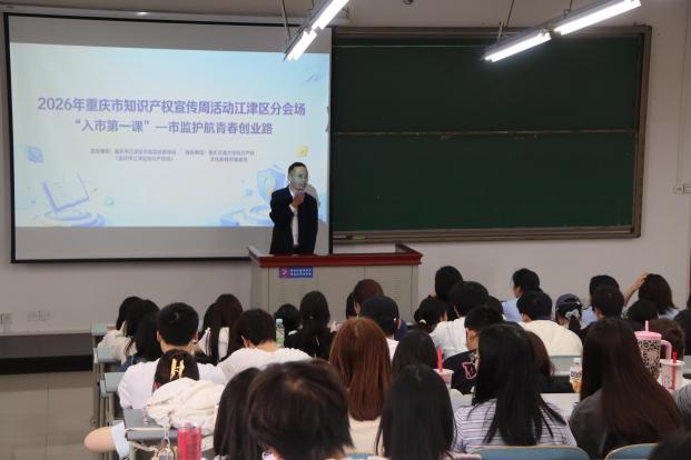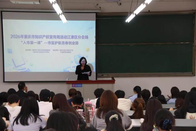 第1眼TV-华龙网讯(郭晓彤)为迎接第26个世界知识产权日,积极响应2026年重庆市知识产权宣传周号召,4月10日下午,由江津区市场监督管理局(江津区知识产权局)主办、重庆交通大学知识产权文化教育传播基地协办的“入市第一课——市监护航青春创业路”专题讲座在重庆交通大学科学城校区举行,为全校创业学子提供创业全流程合规指导。重庆交通大学经管学院知识产权系主任曾野主持讲座。