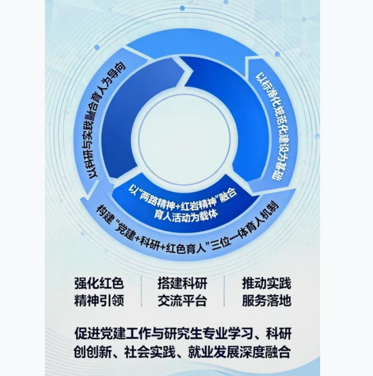 党支部紧紧围绕立德树人根本任务,以提升组织力为重点,以标准化规范化建设为基础,以“‘两路’精神+红岩精神”融合育人活动为载体,以科研与实践融合育人为导向,构建“党建+科研+红色育人”三位一体育人机制。通过强化红色精神引领、搭建科研交流平台、推动实践服务落地,促进党建工作与研究生专业学习、科研创新、社会实践、就业发展深度融合,打造传承红色基因、兼具交大特色的研究生党建育人阵地。