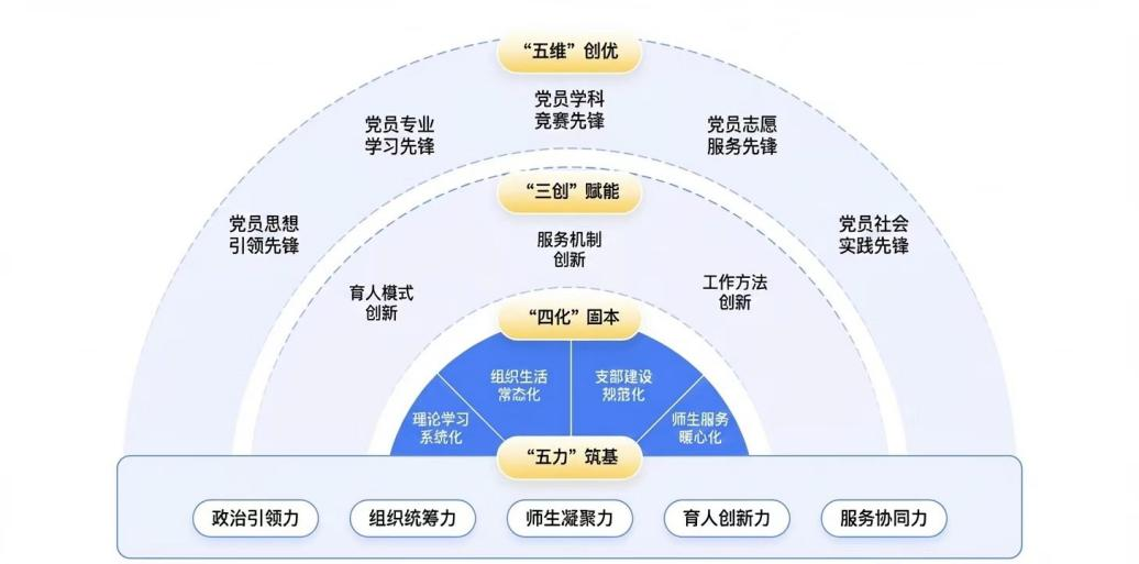 党支部坚持立德树人根本任务,以党建引领为核心,以夯实组织建设为基础,以服务学生成长成才为导向,构建“5435”育人机制,通过“五力”筑基、“四化”固本、“三创”赋能、“五维”创优,推动党建工作与思想政治教育工作深度融合,以打造具有示范价值和广泛影响力的基层党建育人模式为目标,着力构建体系化、制度化、长效化的实践范式。